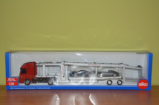 ~~Model auta MERCEDES ACTROS Z NACZEPĄ + 2 AUTA skala 1/50 firmy SIKU numer 3934. Model zawiera ruchome elementy które odzwierciedlają prawdziwość zabawki. Zabawka nadaje się dla małych jak i dużych dzieci, może być także uzupełnieniem kolekcji. Funkcjonalność wykonania, dobra jakość, estetyczność zapewnia długą i bezpieczną zabawę.