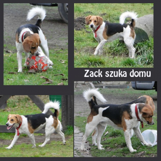 Zack to młody pies w typie beagle, ma około dwóch lat. Mimo młodego wieku, sporo już w życiu przeszedł, przez pewien czas przebywał nawet w schronisku… W czasie swojego, krótkiego przecież życia, zmieniał domy już 10 razy... Nikt nie potrafił odpowiednio go poprowadzić.